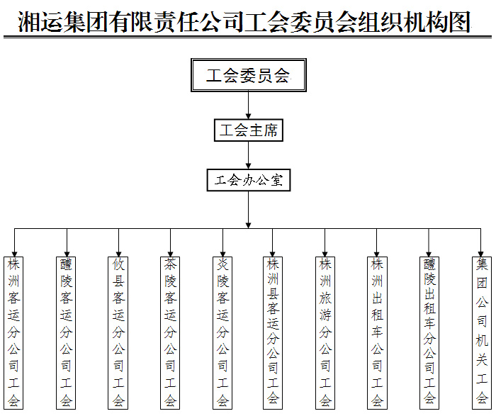 湘運(yùn)集團(tuán)有限責(zé)任公司系湖南省株洲地區(qū)最具規(guī)模、舉足輕重的專業(yè)化道路運(yùn)輸龍頭企業(yè),是以運(yùn)輸產(chǎn)業(yè)為主,房地產(chǎn)開發(fā)、商貿(mào)餐飲等為輔的多元化經(jīng)營的企業(yè)集團(tuán)。集團(tuán)公司設(shè)工會委員會,下設(shè)9個二級工會,現(xiàn)有工會會員1026人,員工入會率達(dá)100%。