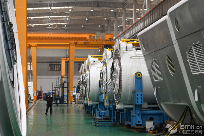 河南明陽新能源裝備產(chǎn)業(yè)園內(nèi)正在組裝的風(fēng)機(劉宏冰 攝) 河南明陽新能源裝備產(chǎn)業(yè)園的風(fēng)機車間正在組裝一個個“龐然大物”。廠長尹權(quán)指著一臺陸上7.5兆瓦風(fēng)機發(fā)電機組介紹:“在滿發(fā)風(fēng)速下,一年可發(fā)電2800多萬千瓦時,每年可節(jié)約9800噸標(biāo)準(zhǔn)煤,減少二氧化碳排放2.5萬噸。” 作為中國500強和新能源裝備全球領(lǐng)軍企業(yè),明陽集團(tuán)與信陽達(dá)成全面戰(zhàn)略合作,推動豫東南高新區(qū)綠色能源裝備制造產(chǎn)業(yè)園、固始縣再生資源循環(huán)經(jīng)濟(jì)產(chǎn)業(yè)園等項目落地。“我們將發(fā)揮‘鏈主’效應(yīng),在信陽打造千億級新能源高端裝備產(chǎn)業(yè)集群,讓新能源產(chǎn)業(yè)新質(zhì)生產(chǎn)力在老區(qū)煥發(fā)蓬勃生機。”明陽集團(tuán)中部大區(qū)董事長劉學(xué)武信心滿滿。