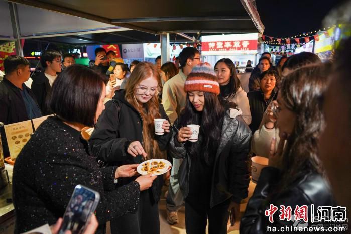 圖為外國友人在品嘗中藥制成的茶點(diǎn)。夏青華 攝 10月22日晚,河南南陽仲景市集煙火繚繞,來自東北的鍋包肉、新疆的烤串、云南的昆蟲宴等天南地北的特色小吃在此同臺競味,吸引眾多市民前來嘗鮮,品嘗跨越山河的南北風(fēng)味。 責(zé)任編輯:王宇 ( 編輯:tln ) |