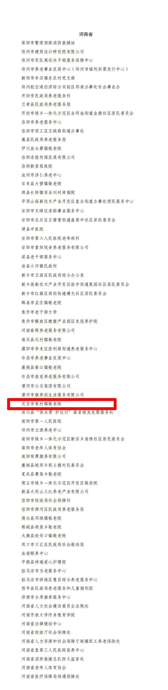 全國老齡工作委員會辦公室關于表彰 全國“敬老文明號”和全國“敬老愛老助老模范人物”的決定 各。ㄗ灾螀^(qū)、直轄市)和新疆生產建設兵團老齡工作委員會辦公室,全國老齡工作委員會各成員單位: 尊老敬老是中華民族的傳統(tǒng)美德,愛老助老是全社會的共同責任。以習近平同志為核心的黨中央高度重視老齡工作,習近平總書記躬身垂范,在全黨全社會樹立孝親敬老的鮮明導向,并對廣泛動員社會參與老齡事業(yè),凝聚積極應對人口老齡化工作合力,作出一系列重要指示。近年來,在以習近平同志為核心的黨中央堅強領導下,社會各界積極關心關愛老年人,廣泛開展敬老愛老助老活動,落實完善老年優(yōu)待政策,持續(xù)提升社會保障、養(yǎng)老服務、健康支撐能力水平,加強老年人權益保障,推動促進老有所依、老有所養(yǎng)、老有所為、老有所樂、老有所安,不斷增強廣大老年人的獲得感、幸福感、安全感,涌現(xiàn)出一大批先進典型。 為表彰先進、樹立榜樣,進一步激勵和動員全社會重視、支持和參與為老服務,營造敬老愛老助老社會氛圍,根據(jù)全國老齡工作委員會辦公室《關于開展2025年全國敬老愛老助老活動評選工作的通知》,經逐級推薦、審核和公示,現(xiàn)決定,授予北京市東城區(qū)東直門街道市民活動中心(黨群活動中心)等1290個集體全國“敬老文明號”稱號,授予高翔等1990名個人全國“敬老愛老助老模范人物”稱號。希望受到表彰的集體和個人珍惜榮譽、再接再厲,充分發(fā)揮模范作用,引領帶動全社會傳承弘揚中華優(yōu)秀傳統(tǒng)美德,積極營造敬老愛老助老文明風尚,共建老年友好社會,為全面提升老年人生活質量、增進老年人福祉、促進新時代老齡事業(yè)高質量發(fā)展貢獻更大力量。 各地區(qū)、各成員單位要廣泛開展先進典型宣傳學習活動,充分發(fā)揮榜樣教育人、鼓舞人、引領人的重要作用,把榜樣力量轉化為社會各界尊老敬老、愛老助老的生動實踐;要聚焦老年人的急難愁盼問題,用心用情做好老齡工作,完善政策舉措,營造良好社會環(huán)境,切實把老年人生活保障好、作用發(fā)揮好、權益維護好,凝心聚力譜寫新時代新征程老齡事業(yè)高質量發(fā)展新篇章,為以中國式現(xiàn)代化全面推進強國建設、民族復興偉業(yè)作出新的貢獻! 全國老齡工作委員會辦公室 2025年10月17日 河南省入選全國“敬老文明號” “敬老愛老助老模范人物”表彰對象名單 ![]() ( 編輯:tln ) |